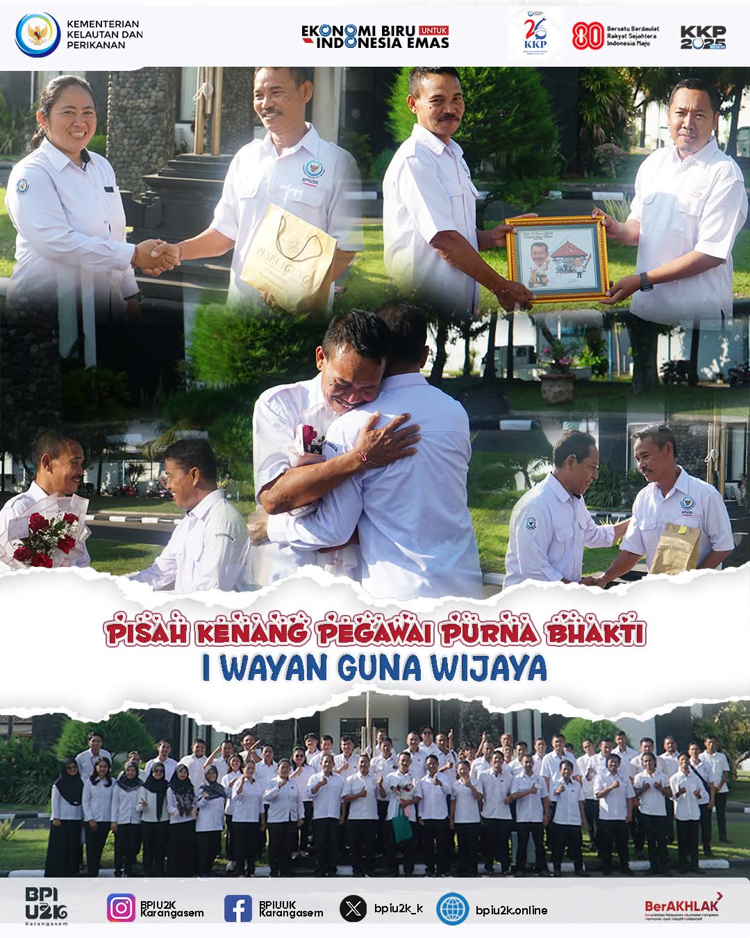 Dalam acara tersebut, seluruh pegawai BPIU2K Karangasem turut hadir memberikan penghargaan dan kenang-kenangan sebagai simbol rasa terima kasih atas kerja keras dan kontribusi I Wayan Guna Wijaya selama bertahun-tahun dalam mendukung pelaksanaan program pelatihan, penyuluhan, dan pemberdayaan masyarakat perikanan.