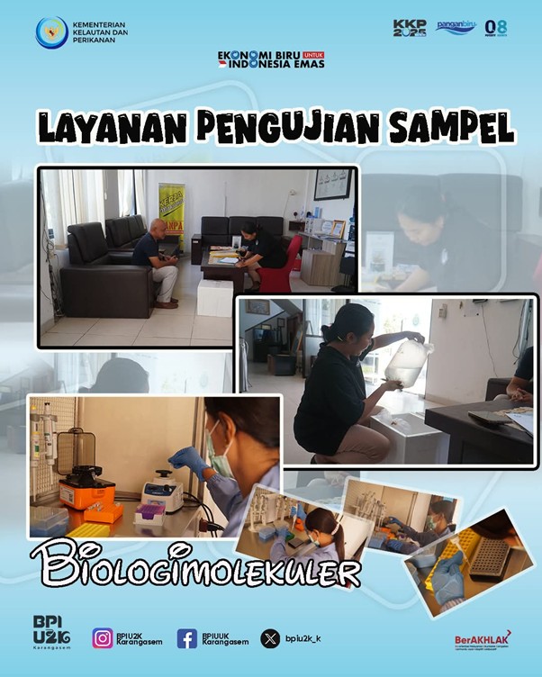 Balai Produksi Induk Udang Unggul dan Kekerangan (BPIU2K) Karangasem terus memperkuat perannya dalam mendukung keberlanjutan sektor kelautan dan perikanan melalui layanan pengujian sampel biologimolekuler.
