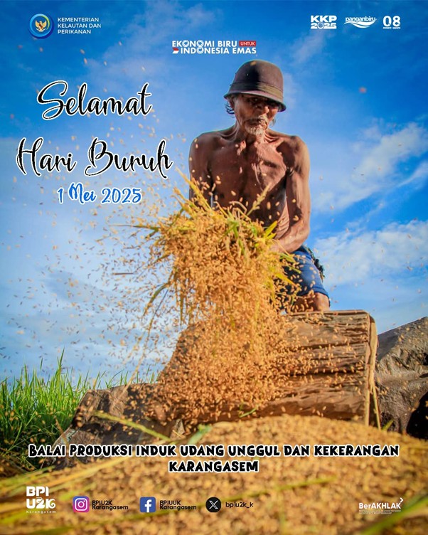 Karangasem, Bali — Dalam rangka memperingati Hari Buruh Internasional (May Day) yang jatuh pada 1 Mei 2025, Balai Produksi Induk Udang Unggul dan Kekerangan (BPIU2K) Karangasem menyampaikan apresiasi setinggi-tingginya kepada seluruh pekerja yang telah berkontribusi nyata dalam pembangunan sektor kelautan dan perikanan nasional.