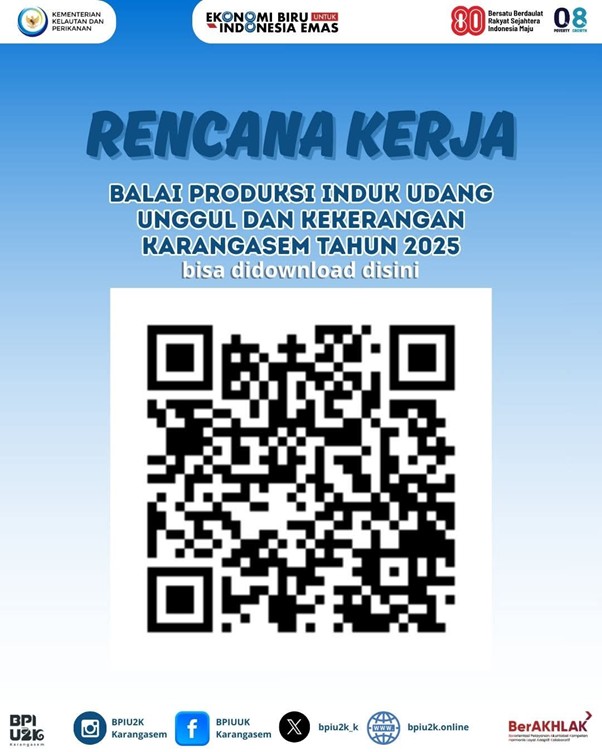 Kementerian Kelautan dan Perikanan (KKP) terus memperkuat komitmennya dalam mendukung program Ekonomi Biru untuk Indonesia Emas. Melalui Balai Produksi Induk Udang Unggul dan Kekerangan (BPIU2K) Karangasem, KKP resmi merilis Rencana Kerja Tahun 2025, yang kini dapat diunduh secara daring melalui kode QR yang tersedia.