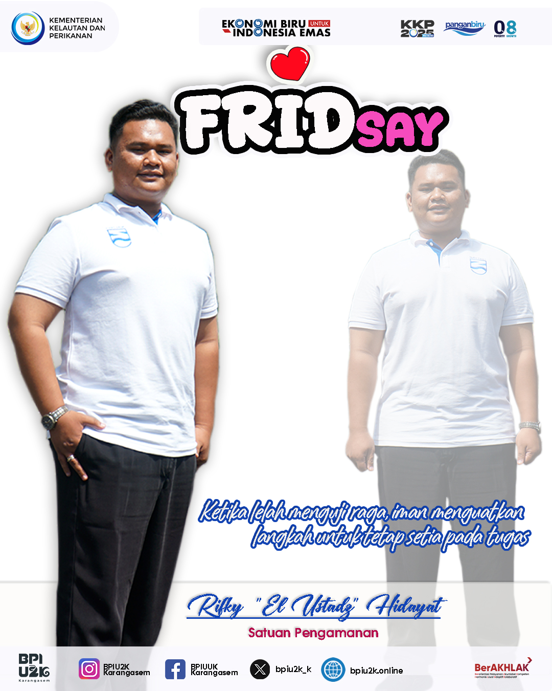 Dengan mengusung pesan “Ketika lelah menguji raga, iman menguatkan langkah untuk tetap setia pada tugas”, FriDay menjadi pengingat bahwa profesionalisme kerja tidak hanya ditopang oleh fisik, tetapi juga mental dan spiritual yang kuat. Nilai tersebut sejalan dengan semangat BerAKHLAK yang terus digaungkan di lingkungan Kementerian Kelautan dan Perikanan.